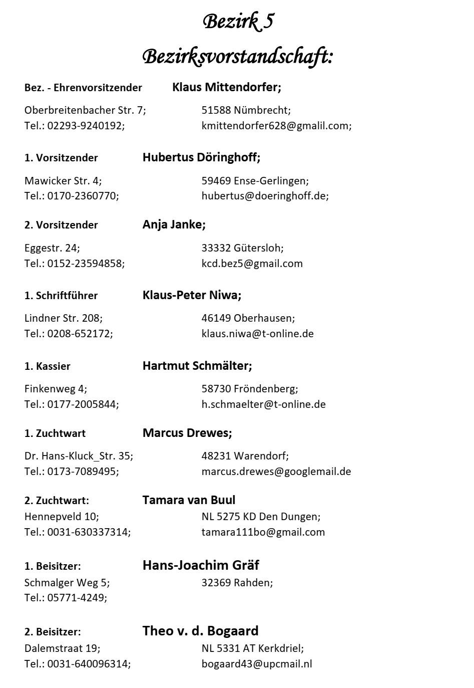 • Vorsitzender des KCD und der Bezirke