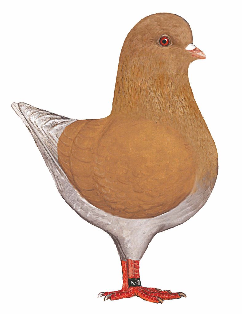 Gleichmäßig kräftig gelb sind Kopf, Hals, Brust und Bauch bis zum Schenkelgefieder sowie das Flügelschild. Das hintere Bauchgefieder sowie der Keil sind rahmgelb, wobei bei Täubinnen ein grauer Anflug toleriert wird. Die Schwingen- und die Schwanzfarbe ist hell, wobei hier farbliche Einlagerungen im unteren Teil stärker vorhanden sind. Das Auge ist orange bis rot. Die Schnabel- und Krallenfarbe ist hellhornfarbig.