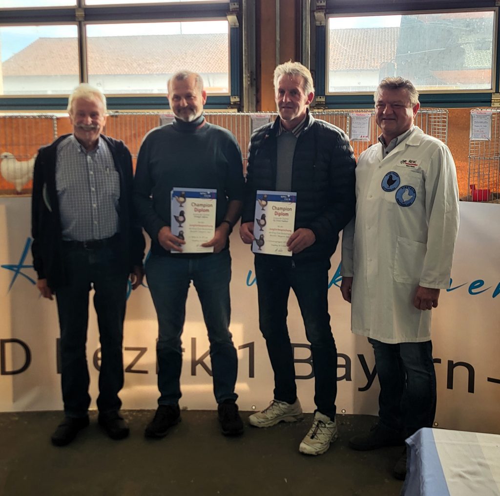 Die vom Zuchtwart des KCD durchgeführte Champion-Wahl, kam zu folgendem Ergebnis: Den besten Jungtäuber stellte Walter Hermann mit Tier in dem für ihn fremden braunen Farbenschlag. Bei den Täubinnen ging das Diplom an eine schwarze Täubin von Walter Dieterle, an welcher es nichts auszusetzen gab.